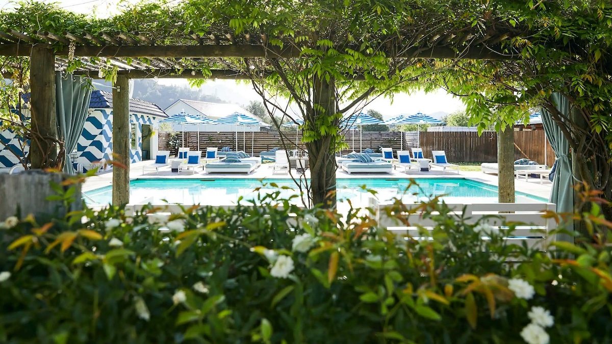 Perfect for friends or family, these beautifully appointed rooms feature a refrigerator, free WiFi, and a separate shower for added comfort, all in a non-smoking setting. Bright interiors welcome you to relax and recharge. Rooted in Calistoga’s rich history, each space embraces a spirit of wellness and discovery. Step outside to enjoy our rejuvenating spa garden and inviting outdoor living areas.