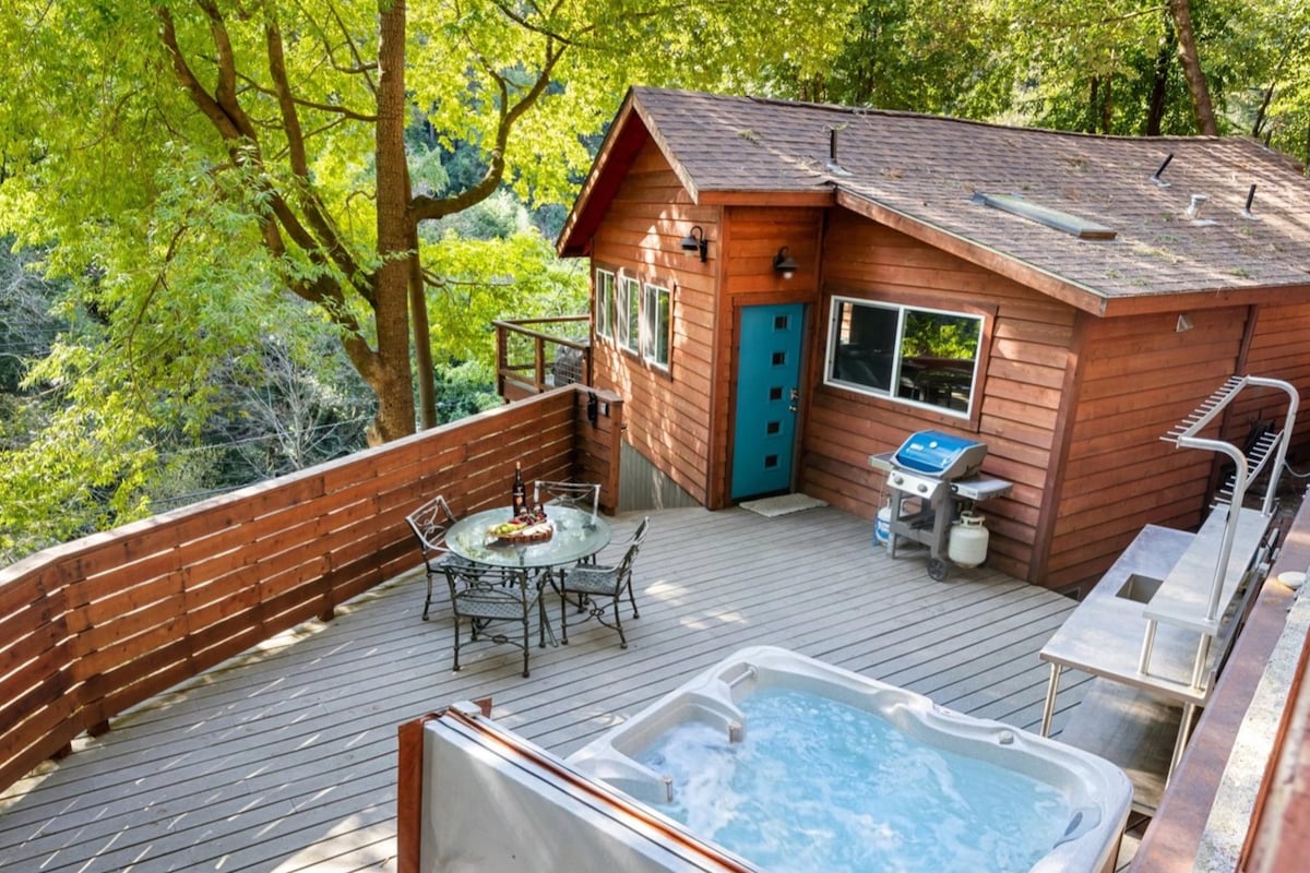 舒适的A型房屋 | 红杉下的热水浴缸 | 步道