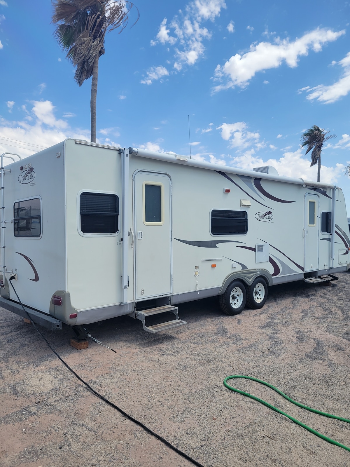 Stay right on the beach in Puerto Penasco aka Rocky Point. The 30ft travel trailer with one large pop out will be all set up and ready for you to start your vacation. There are 3 beds. 1 bedroom with Queen, 2 pull out beds in the living room. Bathroom has a separate toilet room from the shower and sink. Rv Park Wifi access included.