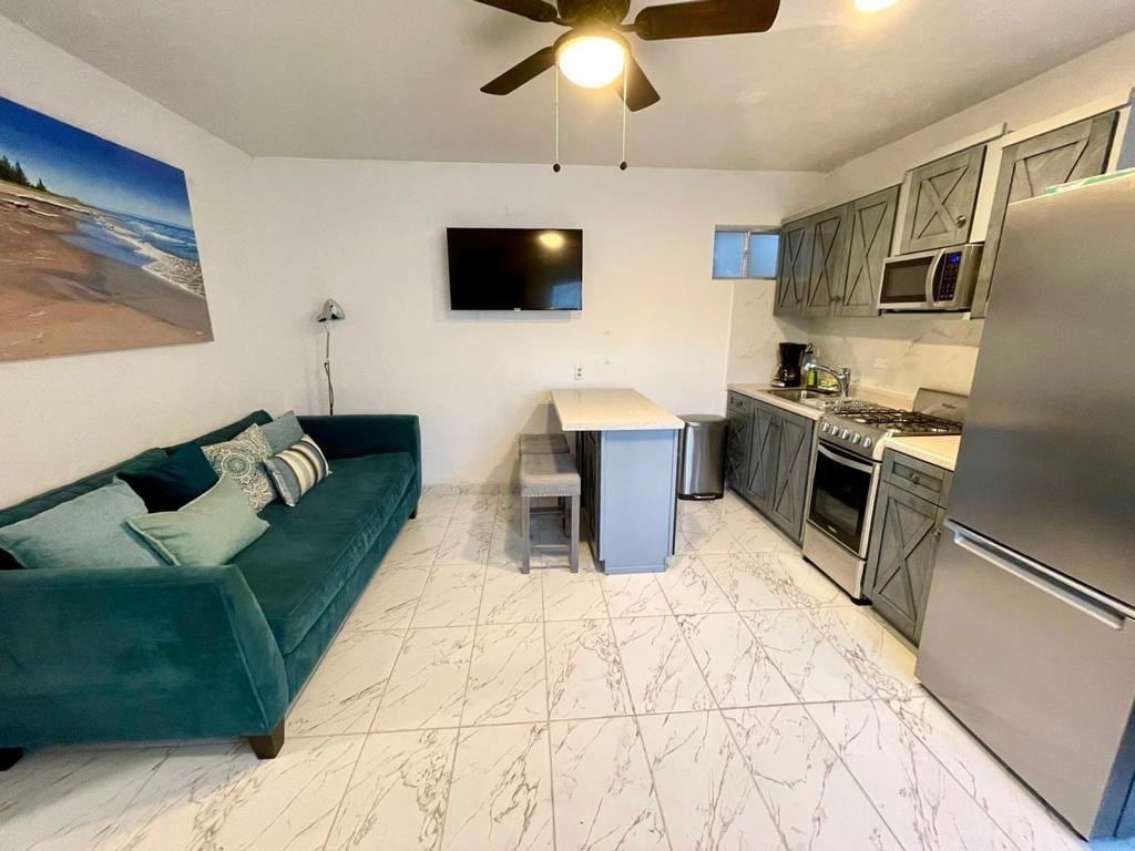 Relax in the charm of this centrally located Studio with small well equipped kitchen, 1 bedroom, 1 bathroom, great private terrace ideal for hangout, with charcoal bbq grill & dining table to lunch or dine outdoors. Perfect for a couple, small family or small group of friends. Beach access just step away from your front door. Walking distance to restaurants, convenient stores & small shops. Enjoy many activities starting at sunrise, jogging, swimming, kayaking, paddle boarding, fishing, hiking.
