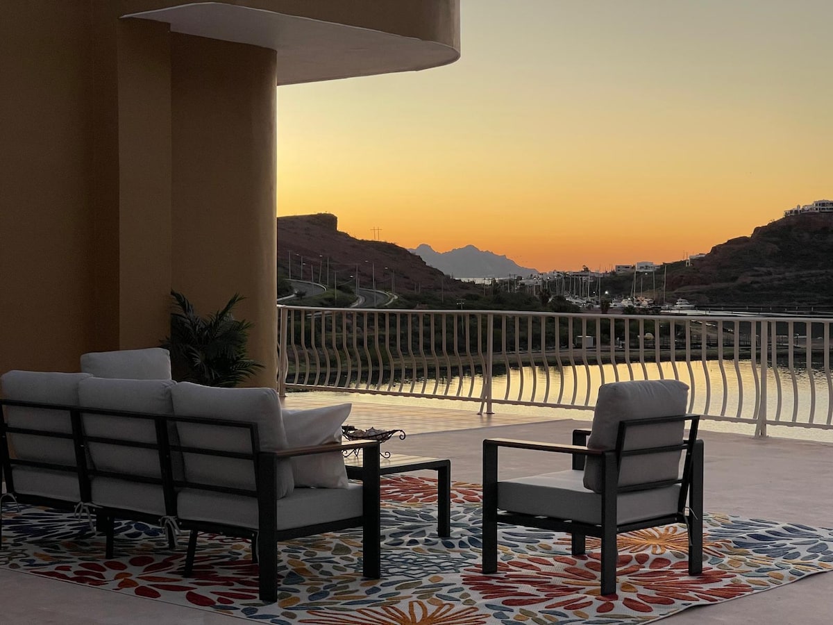 View of Sea of Cortez, sunrise, marina, city. Near shops, restaurants, local pubs. Short walk to San Carlos marina and beach. 4 bedrooms (one small room w/ sofa bed), 3 full bathrooms, Starlink fast reliable internet/WiFi, water purification/softener system, A/C, heat, smoke/carbon monoxide alarms, folding desk table, Bluetooth audio system, PlayStation 3, Pack 'N Play baby crib, high chair. Fully-stocked kitchen, Mexican style murals/art, fountain, wraparound balcony, clean and cozy.