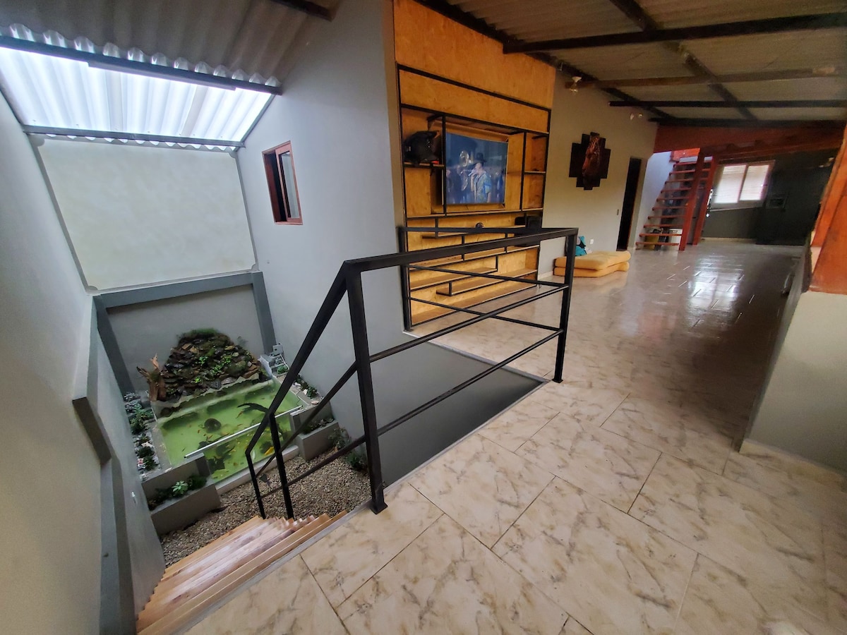 ¡Bienvenido a nuestro retiro natural! Esta espaciosa casa de dos niveles ofrece comodidades modernas y una ubicación privilegiada. Disfruta de una sala acogedora, cocina equipada, y habitaciones confortables. Relájate junto a la chimenea al aire libre o explora el pequeño río a solo minutos de distancia, con su bañadero exclusivo y senderos para caminar. ¡Descubre una cascada impresionante a poca distancia! La combinación perfecta de confort y naturaleza para tu escapada ideal.