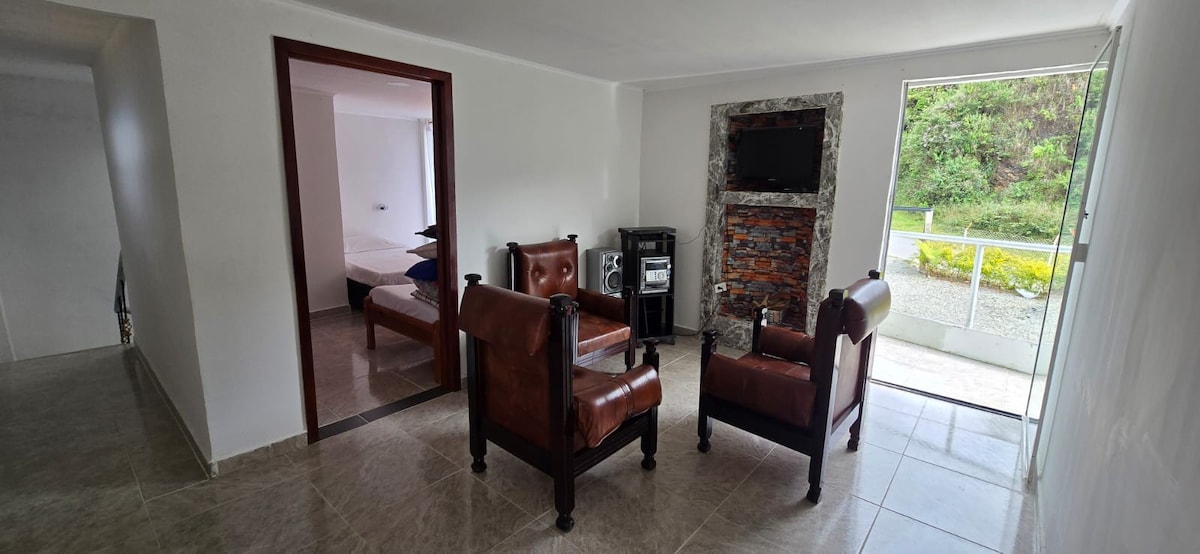 Apartamento nuevo con excelente vista del suroriente antioqueño. Muy buena ubicación, zona tranquila y cerca a lo que necesite para que su estadía sea mucho mejor. Apartamento totalmente equipado y con capacidad para máximo 7 personas. Cerca a la plaza principal y a los sitios de interés y turísticos del municipio (10minutos caminando)