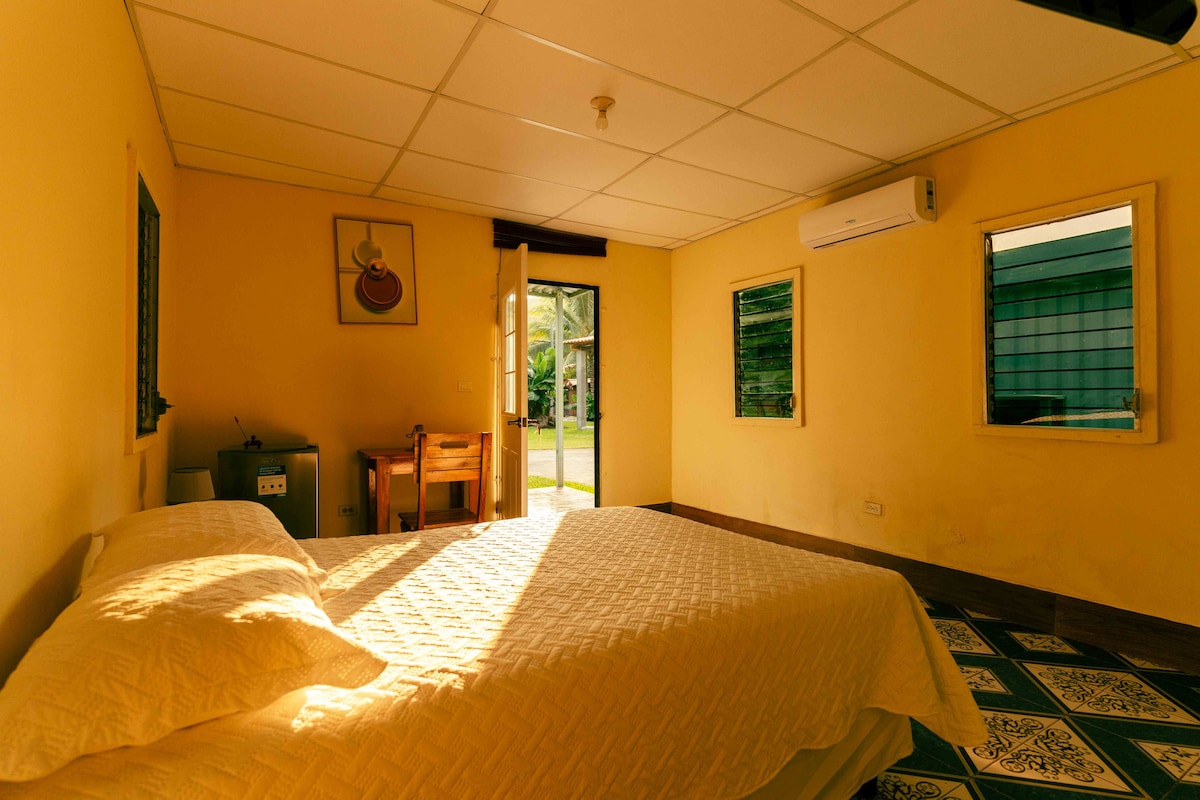 Take it easy at this unique and tranquil getaway. You will enjoy a private room, 2 to 5 people,with a bathroom, ac, equipped with coffe pot, microwave, refrigerator Beautiful swimming pool and hammock area. Outdoor cooking and dining area Walking distance to beach (3 min walk) sunrise and gorgeous sunsets. Also variety of beautiful nature get away places within a short drive distance, come try us out, we will like your stay as relax as posible