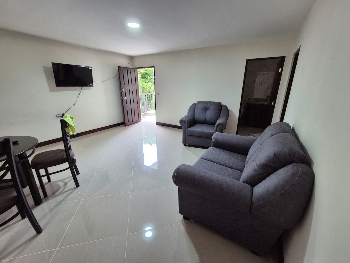 Apartment located on the 1st floor. It's an apart hotel with 9 apartments and a view in front to see. Perfect for couples or family. (We get a crib upon request) Bar (Free coffee from 7am) & short menu's snacks. Second option, we have delivery with Hotel Michanti. Includes in the apartment - 2 Queen Bed & A/C - 1 desk - TV 42" - Private bathroom & shower with hot water - Sala & A/C - Shelf - Full kitchen Rate for 2 guest, maximum 4 guest Pools, BBQ, sun beds, are shared with 9 apartments