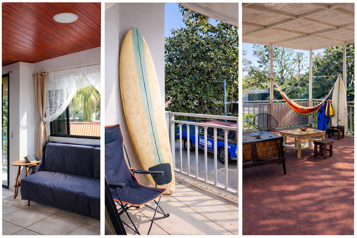 Roof Terrace Studio Apartment in El Zonte Beach, just a few steps from the ocean. Cozy Studio apartmet, with bunk bed and SofaBed Air conditioning. Fast, dedicated 200 Mbps internet – ideal for remote work. A full bathroom Outdoor kitchen, a BBQ, hammocks, chairs, tables... everything you need to chill or have friends over. Located near surf schools, gear rentals, restaurants, car rentals, and bus stops, this spot is perfect for surfers, digital nomads, and beach lovers alike.
