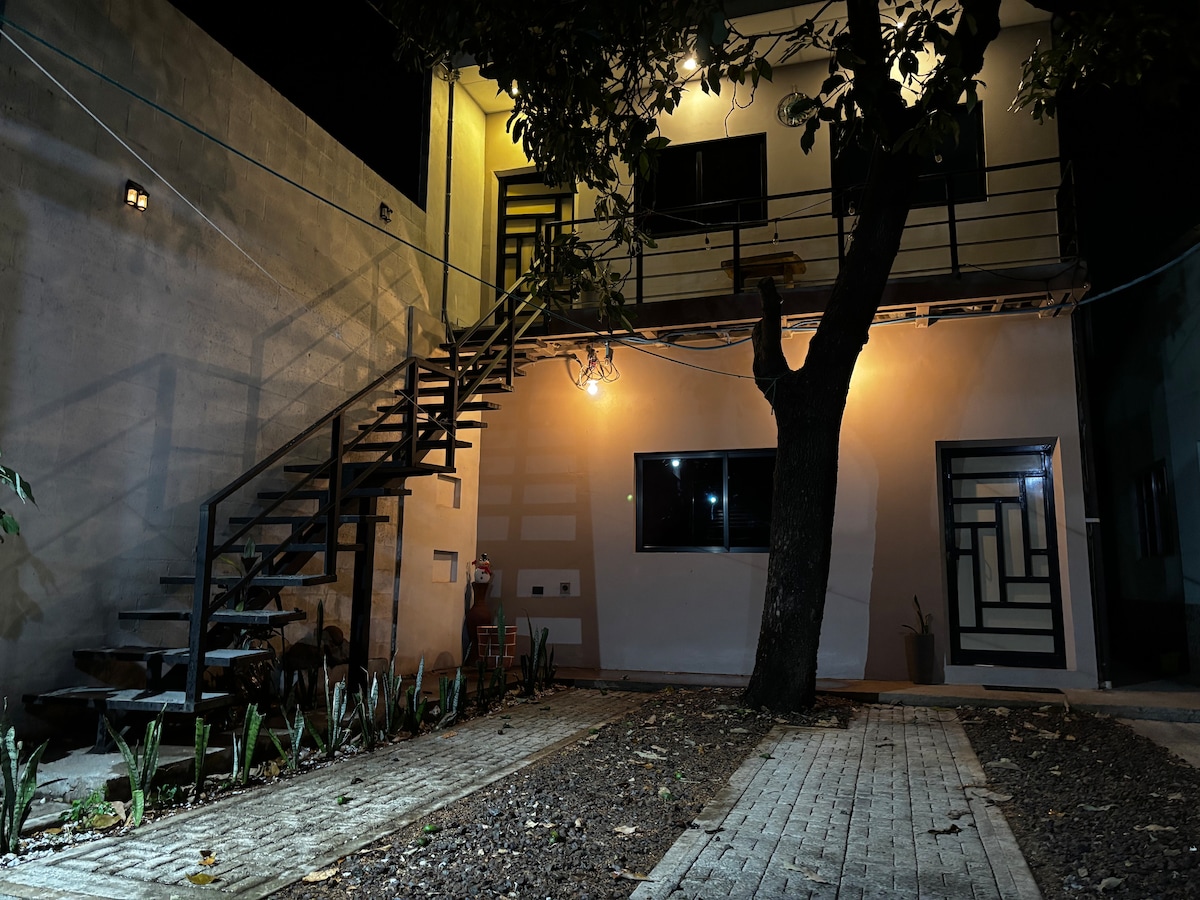 Villa de Vientos, en el corazón de Apaneca, cautiva a primera vista con su primaveral jardín interior en el que convergen tres apartamentos. Independientes, equipados al detalle y con baño propio, todos ofrecen confort, privacidad y lo necesario para sintonizar con la naturaleza, la tranquilidad del pueblo y tener una estadía memorable. El Apartamento 1, con un dormitorio y un espacio multifuncional con cocina y comedor, acomoda a 4 personas, facilita un sofá cama en sala.
