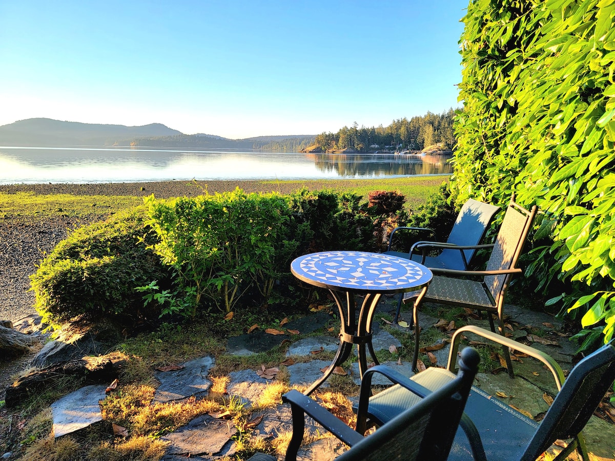 This charming BnB is nestled between the trees & the ocean. A sanctuary on Sooke's inner harbor. View diverse wildlife in this tranquil & private setting. Watch otters & seals play; blue heron fish. Maybe the owl will swoop by & the bear will wander past. You may see whales from your patio! Relax on the deck & dream while sailboats float by in this everchanging, natural landscape. Stroll down paths & enjoy a front row view of this haven at the oceanside cabana. Walk endlessly along the beach.