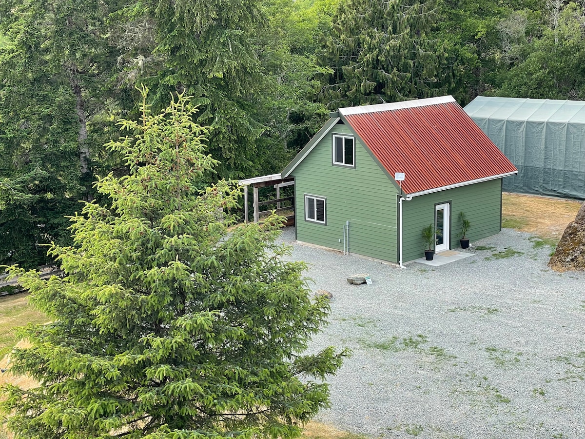Escape to this open concept 2-bedroom cottage, nestled in a tranquil forest. Surrounded by aromatic fir and cedar trees, this home was thoughtfully designed with polished heated concrete floors, high beam ceilings, and a wood-burning stove, providing a cozy and inviting atmosphere. Unwind by the fire or enjoy a soak in the hot tub after a day of exploring the beauty of the Juan De Fuca Trail or nearby beaches. Come and experience all that Jordan River has to offer.