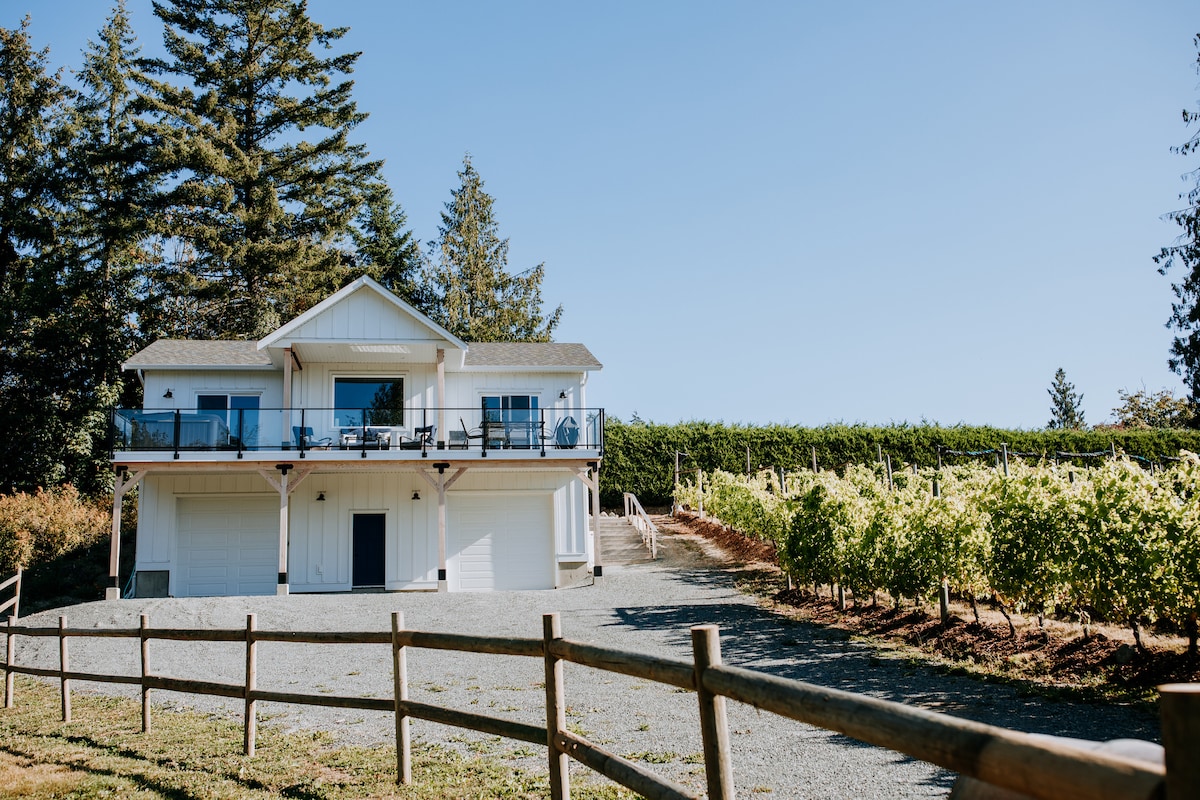 Located on a quiet winding road just minutes from downtown Duncan and situated on a 8.5 acre vineyard and winery that feels like you may be in the middle of nowhere. A fully furnished 950 sq/ft suite with 2 bedrooms, 2 bathrooms and very comfortable to accommodate a group of 4 with the added bonus of a pull out to sleep up to 6. Featuring a 400 sq/ft front deck with a BBQ, comfy patio furniture and a large Jacuzzi hot tub right out front of the master bedroom.