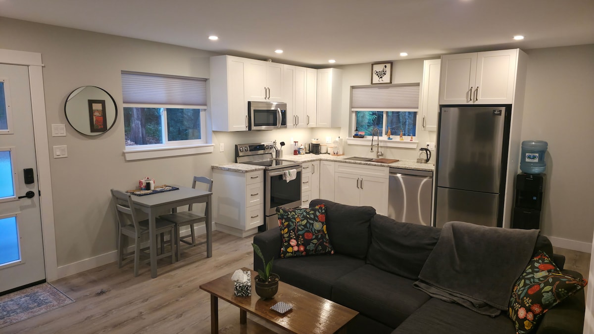 Discover our charming 1-bedroom carriage house in peaceful Westhills, Langford, just 20-25 mins from downtown Victoria and a short drive to Sooke. Enjoy complete privacy with a separate entrance and easy highway access. Explore nearby trails, Goldstream Campground, and the enchanting Juan de Fuca Provincial Park (less than an hour away) where you can explore beautiful spots like China Beach, French Beach, Mystic Falls, Aombrio Beach, Port Renfrew, and many more.