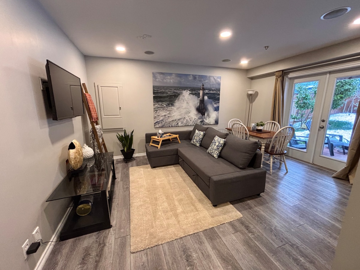 Cozy West Coast Studio Escape to this bright, airy studio guesthouse, just 12 km from Sooke town centre in a tranquil rural setting. Stay cozy with the glass-fronted wood-burning stove and enjoy the outdoors with a Cedar Japanese-style soaking hot tub under bistro lights and a refreshing outdoor shower. Just minutes from Gordon’s Beach, this is the perfect place to relax and soak up the serenity of the West Coast. *outdoor shower turned off during winter months to avoid freezing pipes