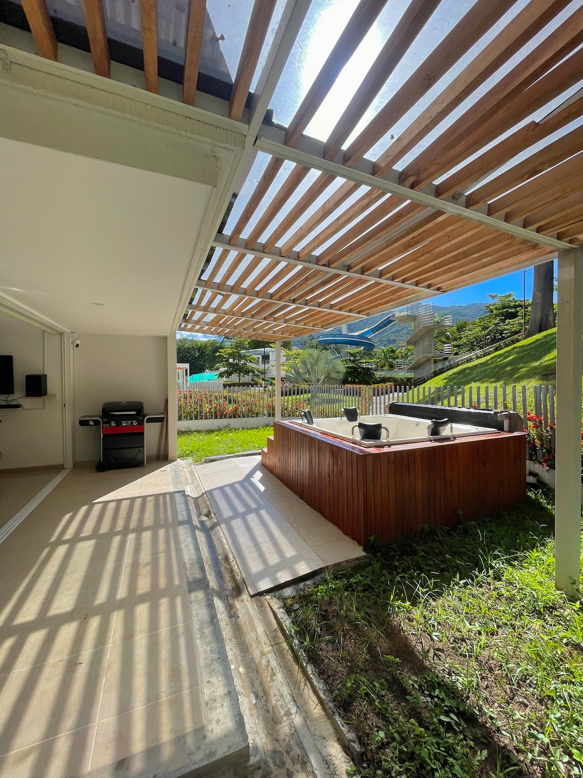 Escápate al corazón del encanto colonial en Santa Fe de Antioquia con este apartamento moderno y cómodo, ideal para familias, parejas o grupos de amigos. Perfecto para relajarse y disfrutar de la calidez del clima antioqueño, este alojamiento combina comodidad, vistas espectaculares y acceso a todas las amenidades de un resort. A solo unos minutos a pie del centro histórico, tendrás lo mejor del descanso y la exploración a tu alcance.