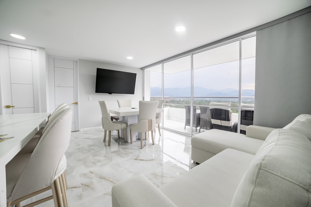 Disfruta de Santa Fe en un apartamento con diseño y acabados de lujo, dentro de una unidad con amenidades tipo resort. Ubicado a solo 7 minutos caminando del parque principal y cerca de restaurantes locales. Nuestro apartamento cuenta con 76 m2, 2 habitaciones con aire acondicionado, 3 baños completos, cocina equipada, zona de ropas con lavadora, sala con tv y un amplio balcón con comedor exterior, y unas excelente vista. Ideal para parejas, familias y amigos que buscan confort y descanso