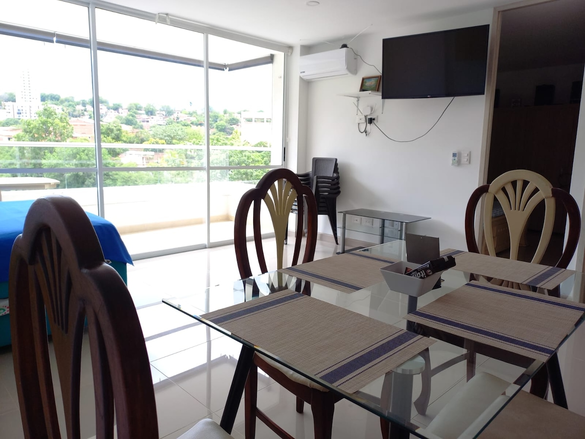Apartamento en la urbanización Citadela Disolé, a 7 minutos caminando del parque principal de Santa Fe. Conformado por dos habitaciones, cada una con cama doble y baño, sala-comedor amplios con un sofa-cama y baño, balcón con una excelente vista y una gran piscina y cancha de futbol en las zonas comunes del edificio. Un lugar excelente para disfrutar en familia o con amigos. Incluye servicio de wifi de 4MG, Smart TV y aire acondicionado . Se permiten mascotas.