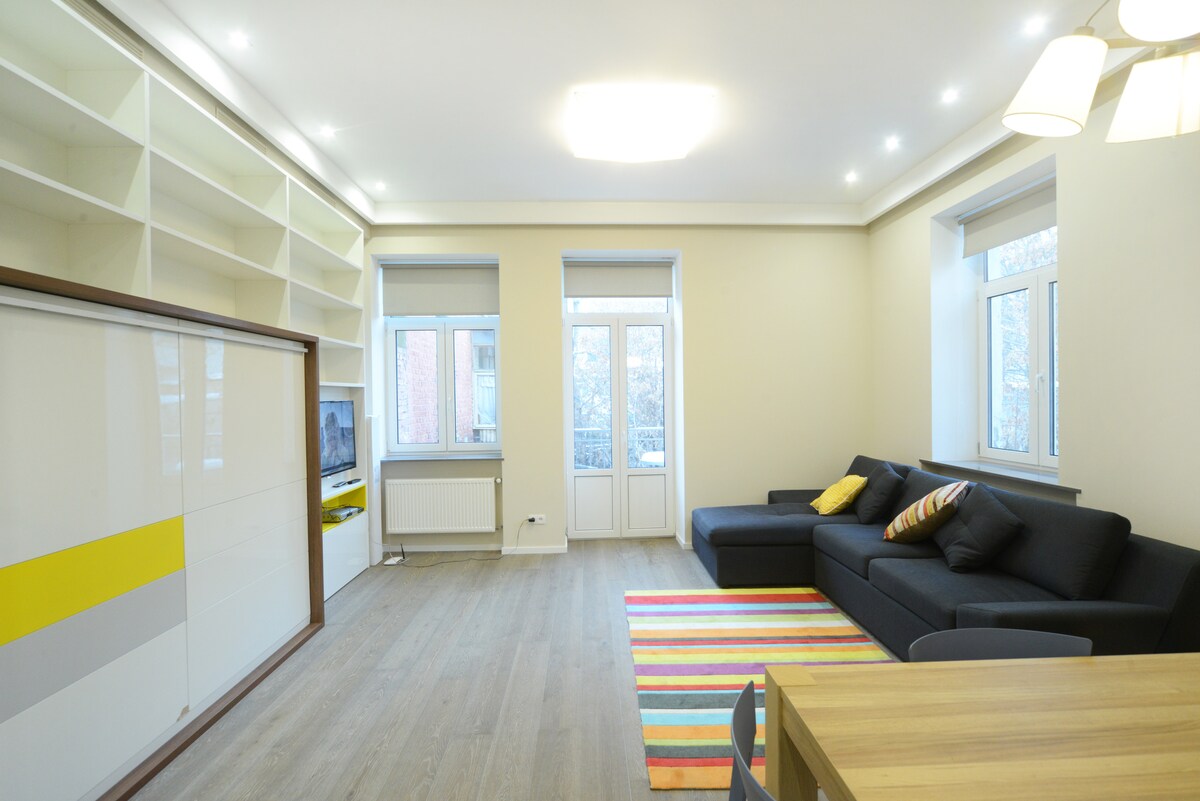 We are pleased to present you a beautiful hotel-type studio in a historic building, which was built in 1905 year, located in the historic centre of the city and it is in the list of architectural monuments. We offer our guests a vacation in new, after renovation, apartments with high ceilings and a quiet courtyard. Well-designed living room with a large bed, an equipped mini compact kittchen. The design is created for your comfort and quality. 43 "ELED-Smart TV with cable TV, internet, WIFI