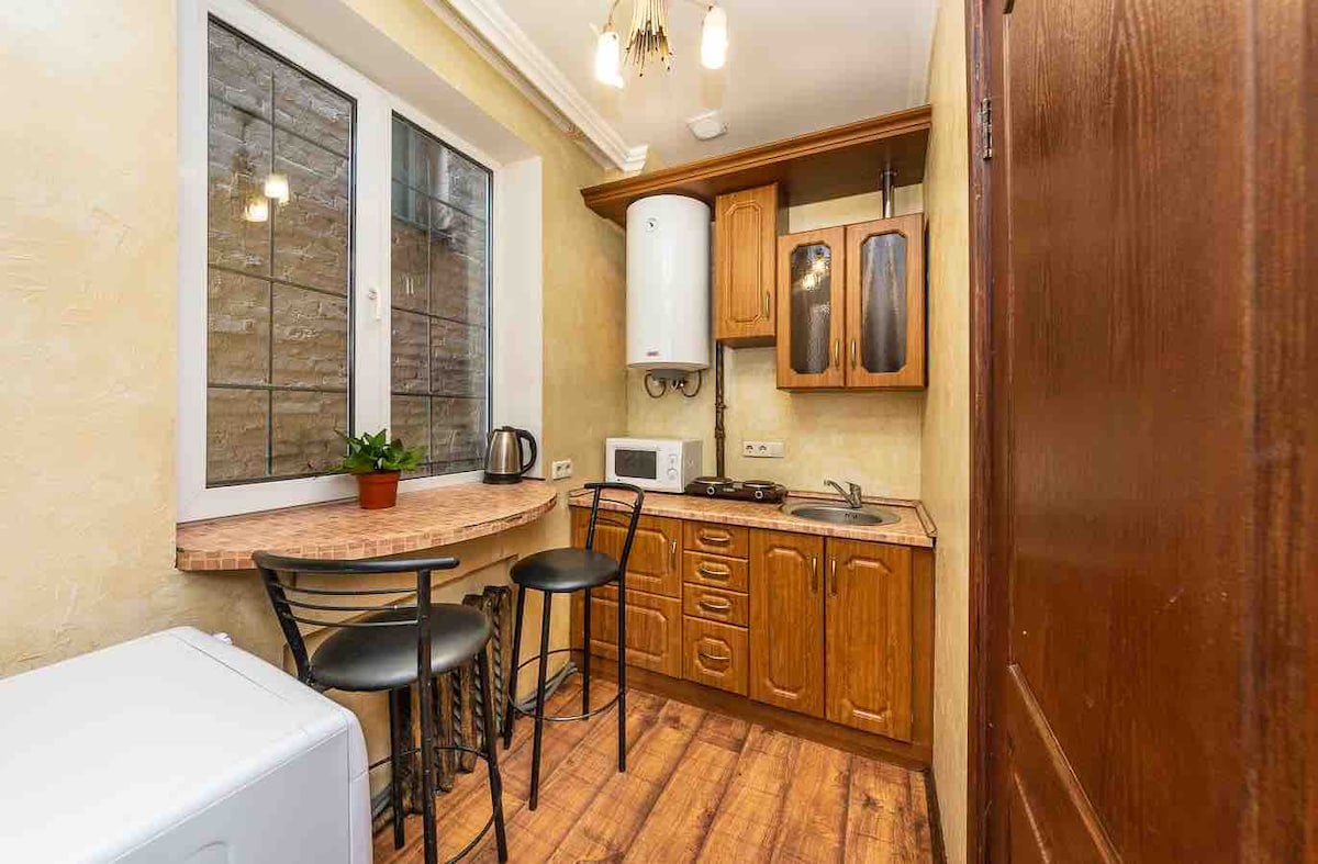 2 bedroom luxury apt in the very heart of Kiev. Super cozy and modern designed 2bdr apartment, completely renovated in 2018. Historical building inside a quiet yard. 2 separate bedrooms with wide double-beds (180x200) with real ortopedic matrasses. Bathroom with bidet and "tropical shower". Modern kitchen with all equipment for cooking and a cofeemaker with natural cofee beans. Electric fireplace designed with natural marble mantelpiece. Comfortable not folding sofa is perfect for relax.