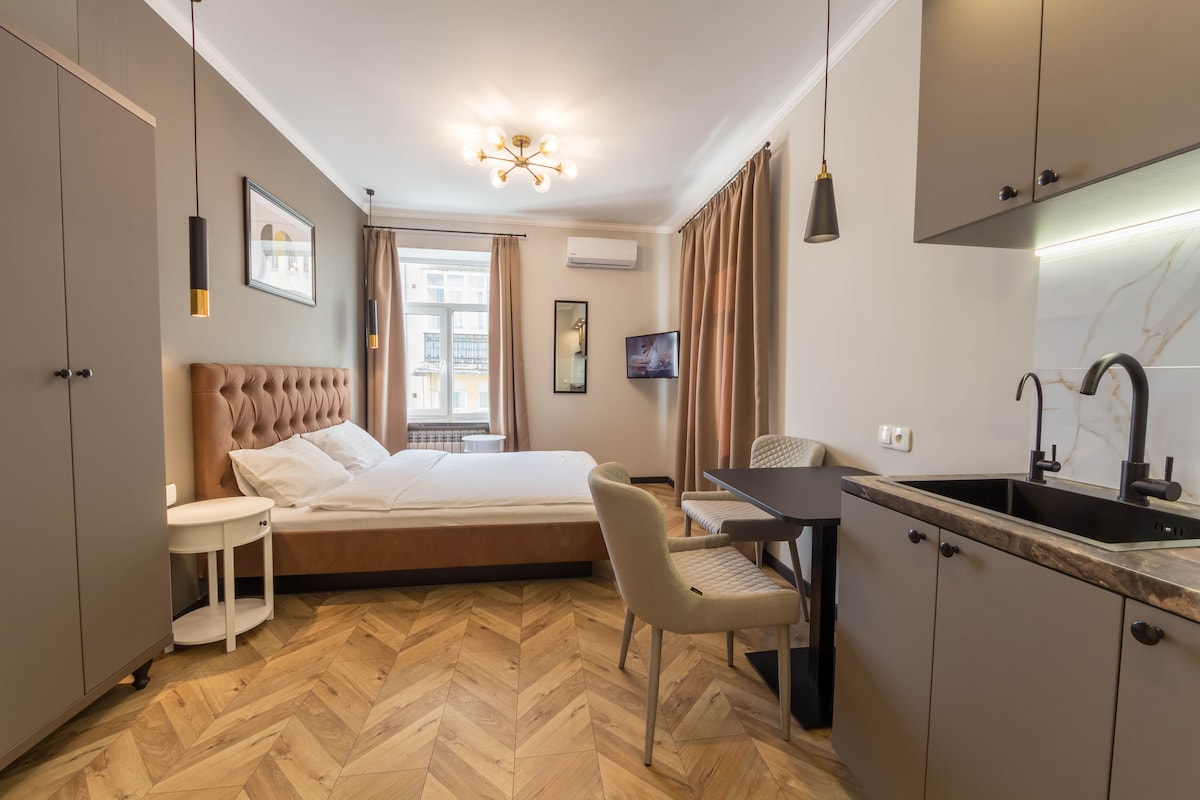 Amazing property located in the heart of center of Kiev inside Boutique Hotel. Renovation completed in 2021. Just a few amenities to list: 4 meter ceilings, Smart TV with YouTube and Netflix, shower cabin, extra large windows, large custom bed and much more. Those looking for luxury in the heart of Kiev center can not go wrong with this property. The property has a 24 hour reception located in the courtyard.