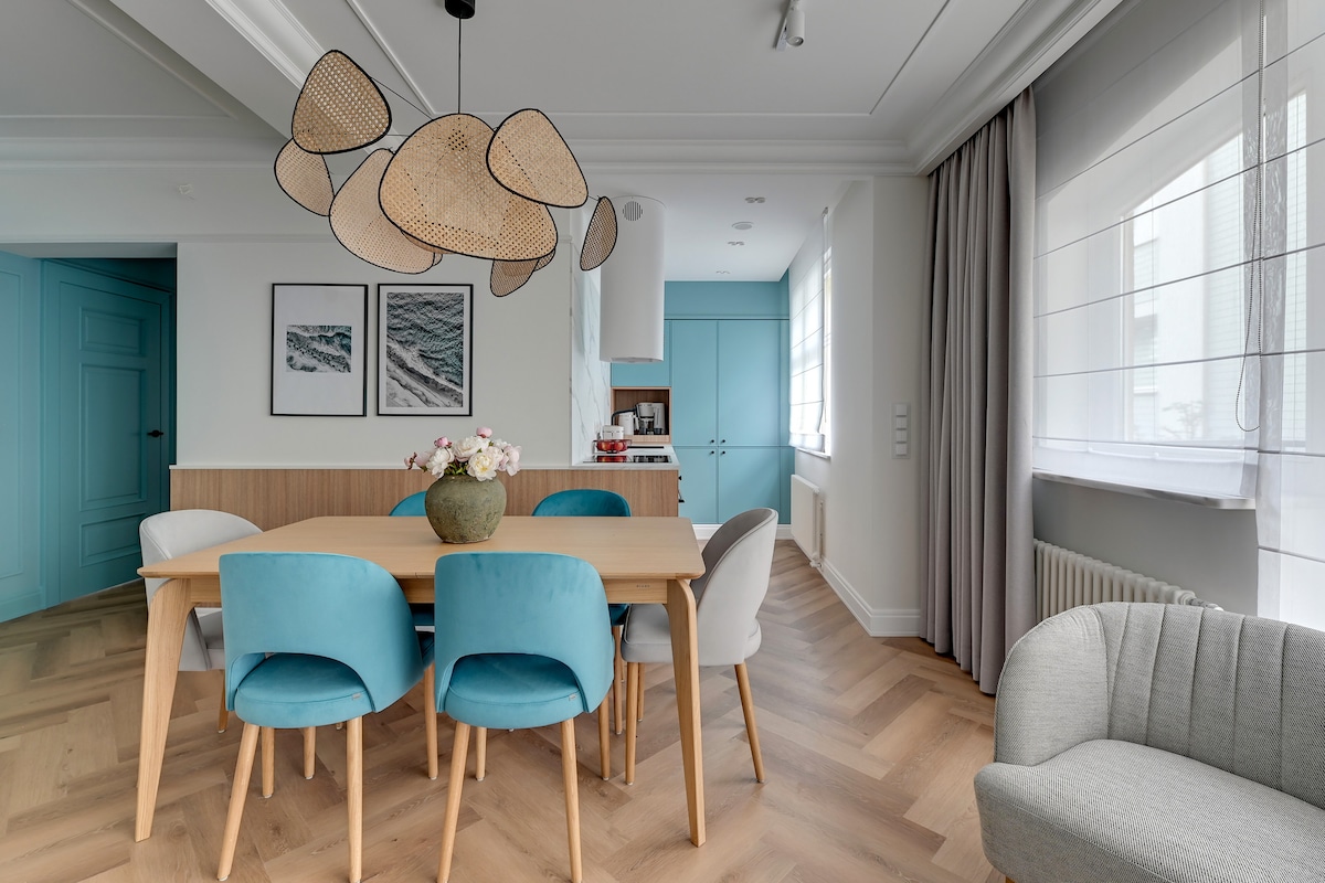 Enjoy a peaceful and stylish stay at this centrally-located place. A newly built, beautifully furnished apartment, perfect for a quiet stay in the heart of Gdańsk. Located on the greenest side of the city center, right next to Góra Gradowa. Although historical and cultural sights, shops, and restaurants are only a 10-15 min walk away, the area feels peaceful and secluded. The place offers a unique, cozy, and very comfortable design, perfect for a couple and a weekend escape.