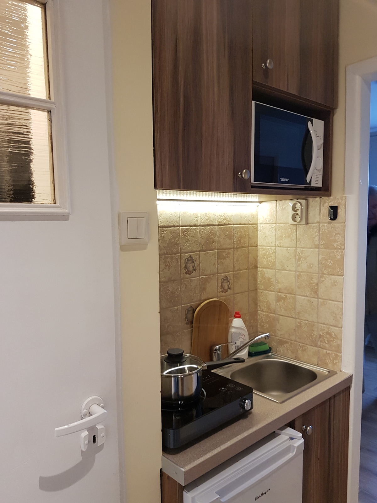 A double bedroom and easy access to the Old Town and all local attractions by public transport. There is plenty free parking space. The rental unit is brand new, is has an en-suite bathroom with a spacious shower cabin, and a small kitchenette with a fridge. There is a king size bed in the room, an extra mattress is available. The apartment is separated from the host's quarters and has a separate entrance into the building. Languages spoken: English, Polish, Spanish.