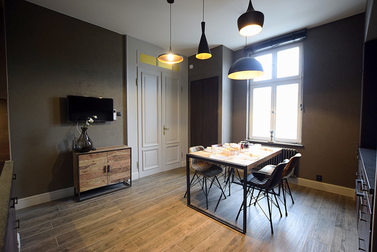 Our apartment is special for many reasons. First of all, it is located right on the beautiful bustling with life Długa Street. It is very well equipped, so that the guests have everything necessary for a comfortable stay. A large kitchen for cooking lovers, a extremely comfortable sofa and full bookshelves for those who love to immerse themselves in reading, board games and activities for children and the whole family.