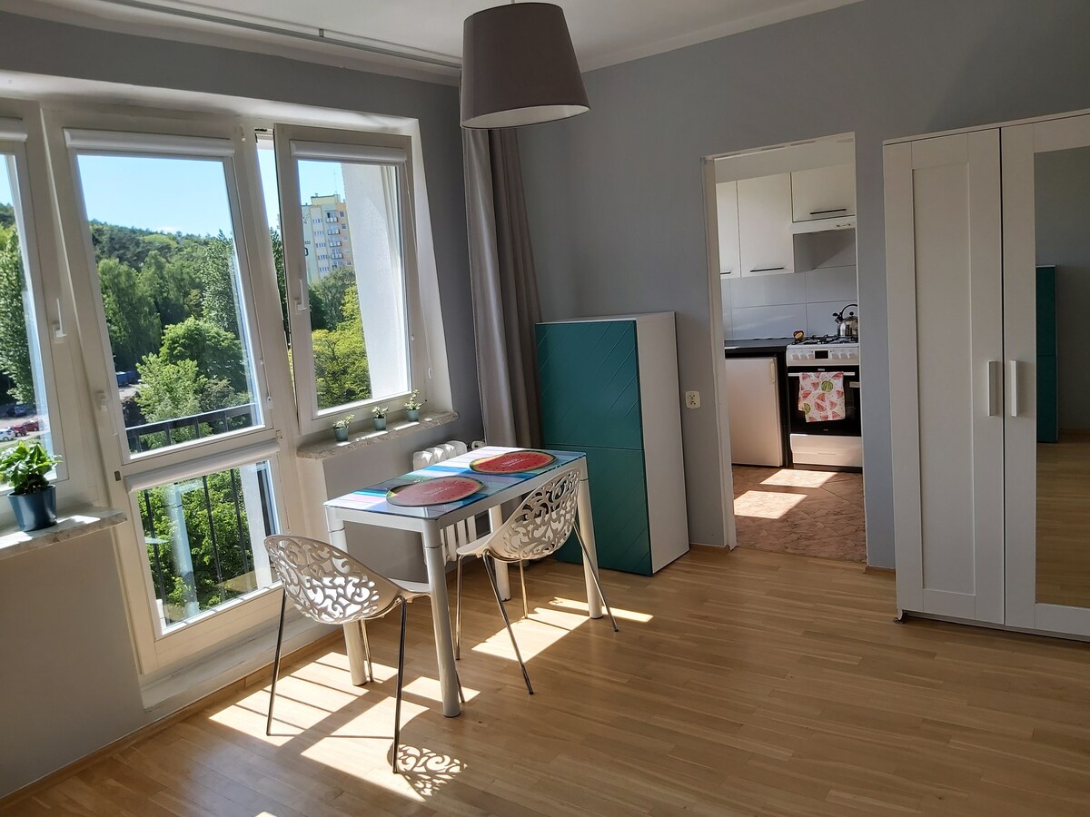 Zadbana i przytulna kawalerka z pięknym widokiem na las w spokojnej części Sopotu. Bardzo słoneczna. Idealna dla turystów. Możliwość spania dla 4 osób (jedno łóżko podwójne i rozkładana sofa dwuosobowa). Zmywarka, pralka, lodówka i kuchenka gazowa z elektrycznym piekarnikiem LOKALIZACJA: 10 min piechotą/3 min autobus do kolejki SKM,przystanek Sopot Kamienny Potok, 15 min autobusem do centrum Sopotu- ul. B. Monte Cassino, dworca PKP, dogodny dojazd do obwodnicy Trójmiasta