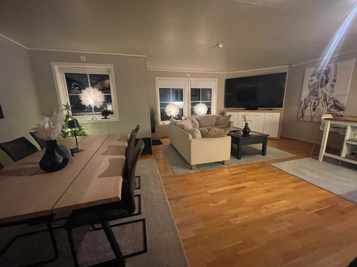 Welcome to the beautiful western coast of Norway and our modern apartment! With floor-to-ceiling windows and a calming view this place is all about comfort and relaxation! A 4 minute walk to the sea for a quick swim or for fishing your own dinner. Located between the cities of Molde and Kritiansund, it is a 20 minute drive to Kristiansund, 50 minutes to Molde AirPort. 3 minute drive to the local supermarket, and 40 minute drive to the amazing Atlantic Road. Relax in this comfy flat with a view!