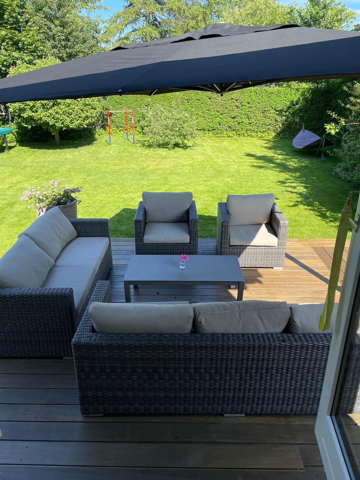 Welcome to our villa located in peaceful surroundings near forest and nature. With a spacious garden, large terrace, trampoline, and a balcony on the first floor, our home is a wonderful retreat for families. The stylish decor and comfortable amenities ensure a pleasant stay, while the convenient location just 4 km from the S-train station and a 20-minute drive from Copenhagen make it easy to explore all that Copenhagen and its surroundings have to offer. *Available for families & couples*