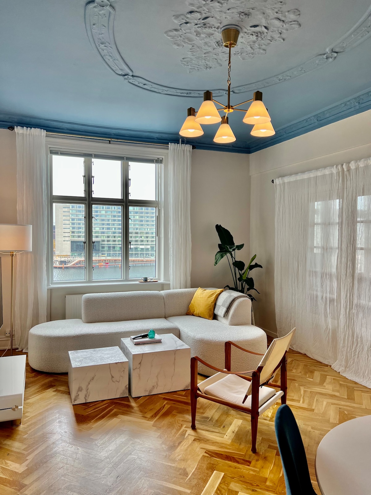 Welcome to our charming houseboat Cocoon in Copenhagen. You will have 55 square meters of floating residence full of "hygge" as well as a terrace. The boat is located on the island Holmen, next to Operaen - walking distance to the city centre, Christiania, and Reff'en. There is a grocery store within 5 min by foot. The airport is 15 minutes away by taxi. The boat has a living room with a sofa bed and a mezzanine bed, a kitchen, a separate bed room, an office, and a bath room with shower