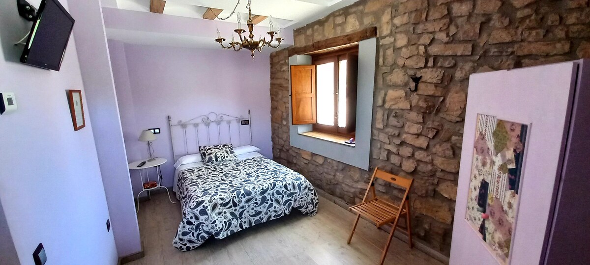 Pequeño hotel con un encanto único que te adentra en una de las tradiciones más antiguas de nuestra tierra, la cultura del vino. En pleno casco histórico y rodeado por dos iglesias del románico del siglo XI y XII, a pocos metros del castillo con su ladera de bodegas tradicionales. Cuenta con 4 habitaciones acogedoras equipadas con todo lo necesario para una estancia confortable. El hotel acoge una bodega tradicional, adaptada a museo y con espacio para degustar los vinos de la zona. Habitación 2