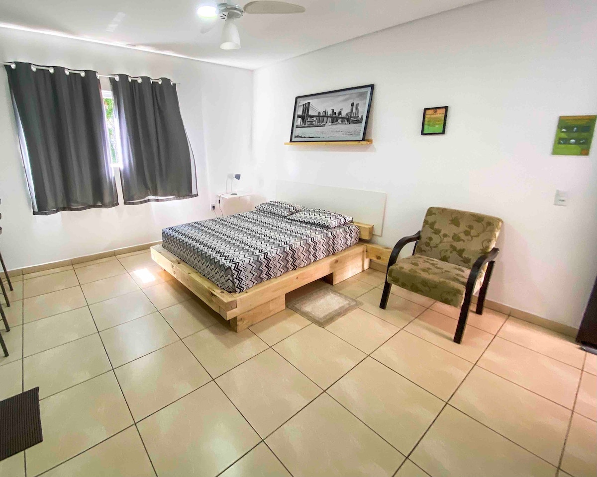 Our studios are equipped with a full kitchen. combined with the living room, a reserved suite and private garage. We are located in a preserved neighborhood, with a single entry and exit, minimal moving cars, fully wooded and with several species of birds. .beyond all beauty natural, urban necessity is within reach. Without need a car, the surrounding area offers, restaurants, bars, market, pharmacy and small mall with bakery and variety of stores and services.