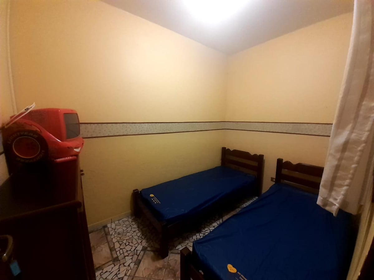 É um quarto ideal para crianças, vovó com neto e hóspedes solteiros. Atenção: as camas desse quarto são de solteiro!