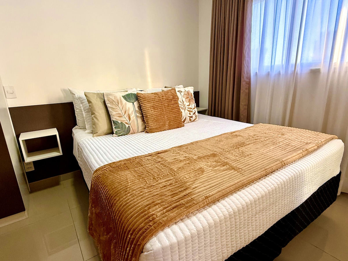 Você já pensou em se hospedar em um apartamento perfeito? Então pare de sonhar e se hospede em nosso espaço! É um apartamento pensado para oferecer o equilíbrio perfeito entre conforto e sofisticação. •⁠ ⁠Localização ótima! •⁠ ⁠Alexa que controla todas as luzes, tv e ar condicionado. Com função “Alexa, cheguei.” e “Alexa, tchau.” •⁠ ⁠Roupas de cama 100% algodão 300 fios •⁠ ⁠Toalhas grandes 100% algodão estilo hotelaria •⁠ ⁠Tv smart com Netflix grátis
