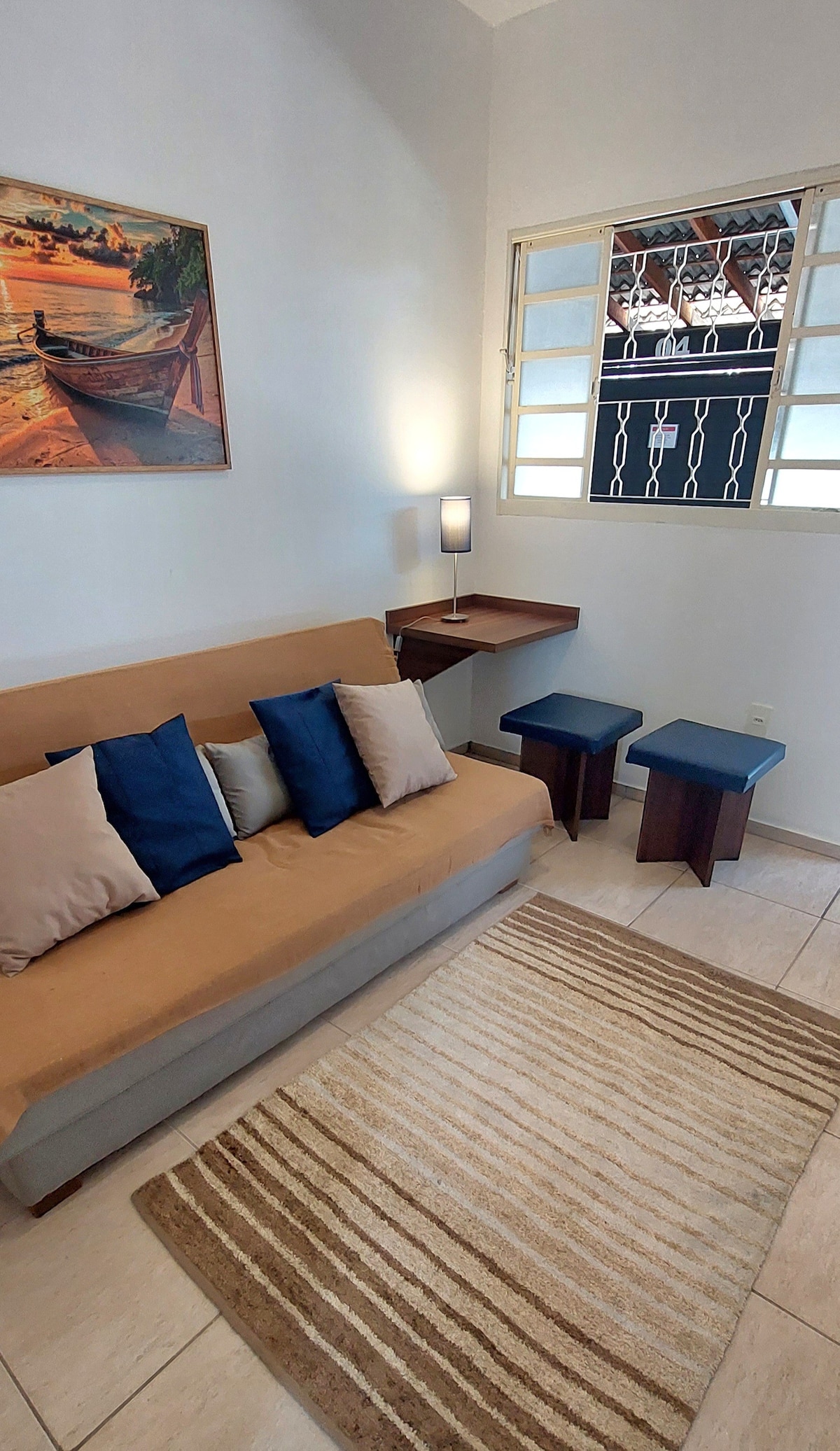 Perfeito para descanso ,em local tranquilo e seguro. Não temos vaga de garagem , mas o local é em rua tranquila e sempre tem vaga em frente ao prédio. Com utensílios na cozinha para um preparo de algo rápido. Temos também ferro de passar e ventilador. Temos cama de casal e caso necessário temos também um colchão extra para acomodar até 3 pessoas. Oferecemos roupa de cama e banho.