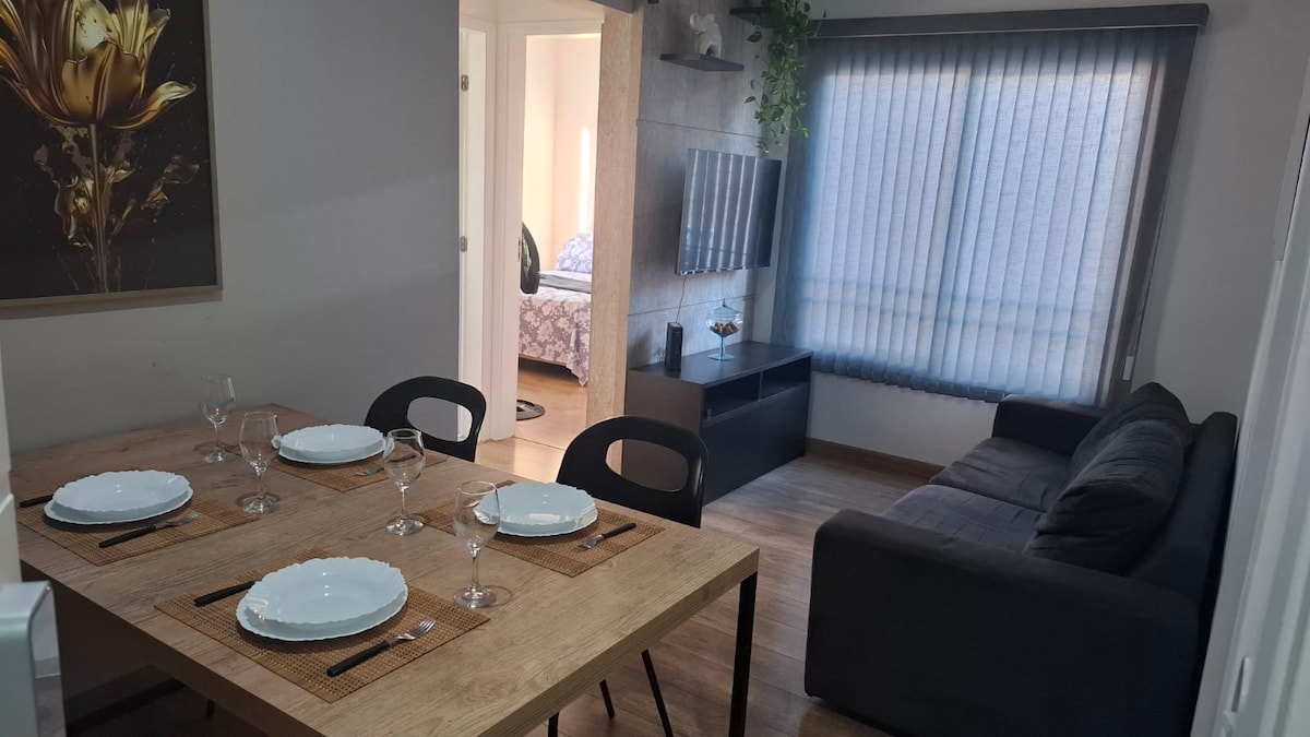 Apartamento novo, em excelente bairro, com elevador e ar condicionado nos quartos, fácil acesso a todas as regiões da cidade, com tudo que o hóspede precisa para uma estadia tranquila. O apartamento foi mobiliado e equipado pensando em seu conforto enquanto estiver em Sorocaba. Relaxe neste espaço calmo e cheio de estilo, limpo, cozinha equipada, máquina lavar, lençóis cheirosos de algodão, Smart TV, Wi-FI rápida, condomínio 24 h, duas vagas, sala de ginastica.