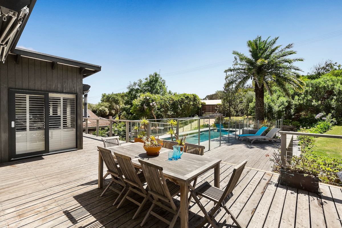 Perfect all year round, relax with family or friends in this renovated cosy beach house. Eleanor's Escape has everything you need for a relaxing beach holiday. Ideally located in a quiet street, the beach just 450m away. A great base to explore award-winning wineries, hot springs, national parks and golf courses, all a short drive away. After a day at the beach, enjoy the outdoor shower before relaxing on the deck taking in the lovely garden, playing board games or table tennis.
