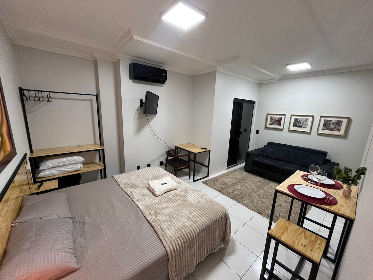 Studio aconchegante na melhor localização da cidade, em frente a praça da Juventude, próximo à farmácias, restaurantes, padaria, mercado, lavanderia, academia... Aproveite o acesso fácil a tudo o que precisar nesta acomodação bem localizada e desfrute de um espaço cheio de estilo e conforto.