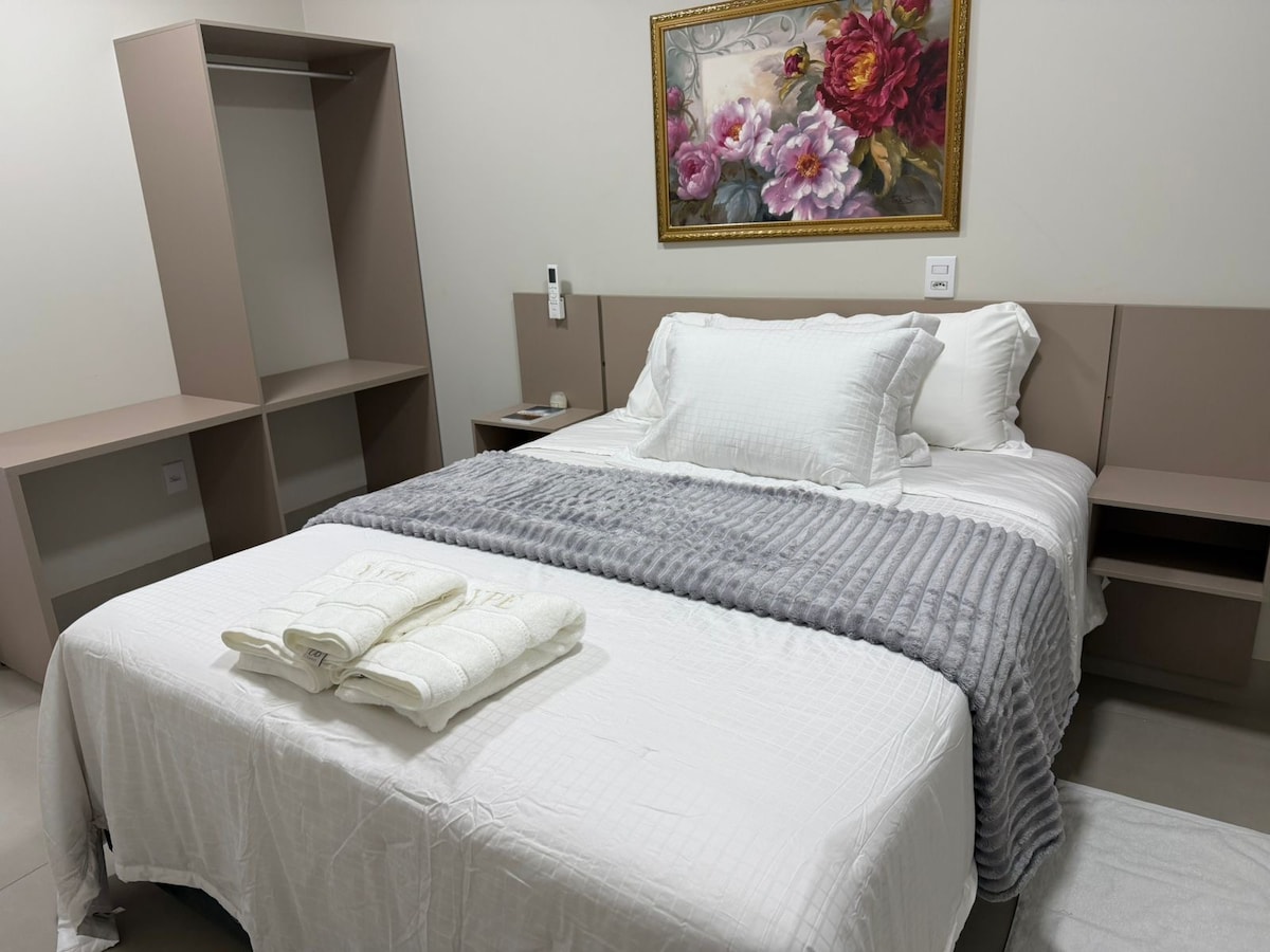 Praticidade, Conforto e Privacidade. Ambiente moderno e completo para seu descanso. Ideal para um casal ou uma pessoa. Mobiliado e Equipado: Wi-Fi, ar cond., geladeira, cooktop, utensílios de cozinha, Smart TV 32" somente Streamer (Netflix, YouTube..) acesso com o Login do hospede. Segurança: Estacionamento, portão eletrônico, cerca elétrica, câmeras de vigilância. A 5 min do centro de Sorriso, próximo a mercados, pizzaria, farmácias, sorveteria, posto de combustível, Lazer no Parque do Lago.