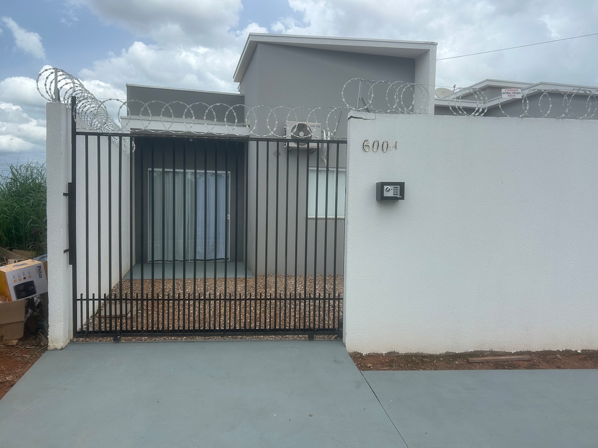 Praticidade, Conforto e Privacidade. Ambiente moderno e completo para seu descanso. Ideal para um casal ou uma pessoa. Mobiliado e Equipado: Wi-Fi, ar cond., geladeira, cooktop, utensílios de cozinha, Smart TV 32" somente Streamer (Netflix, YouTube..) acesso com o Login do hospede. Segurança: Estacionamento, portão eletrônico, cerca elétrica, câmeras de vigilância. A 5 min do centro de Sorriso, próximo a mercados, pizzaria, farmácias, sorveteria, posto de combustível, Lazer no Parque do Lago.
