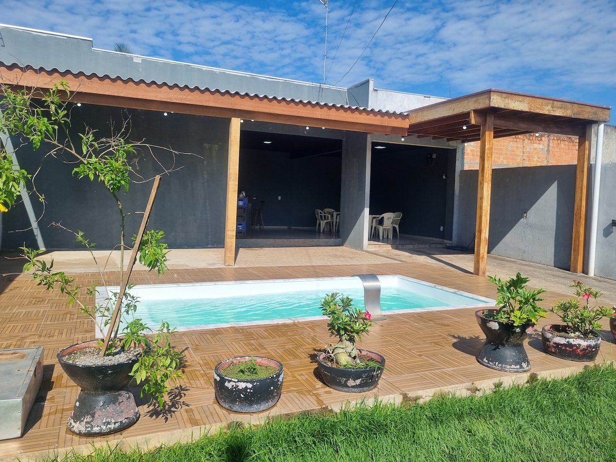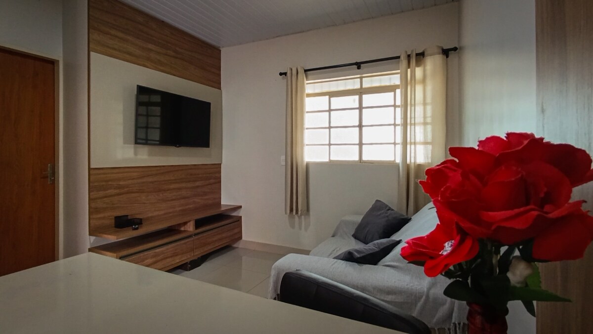 Casa completa com 2 quartos, sala, cozinha equipada com fogão de indução e jogo de panelas. Quintal amplo, garagem coberta e espaço para mais 6 carros. A uma quadra de padaria, farmácia, supermercado Del Moro e loja Martinello. Segurança com câmeras, cerca elétrica, sensores externos e portão eletrônico. Lavanderias próximas a partir de R$16. Conforto, praticidade e tranquilidade! Ideal para famílias, viajantes a trabalho ou quem busca sossego com ótima localização.