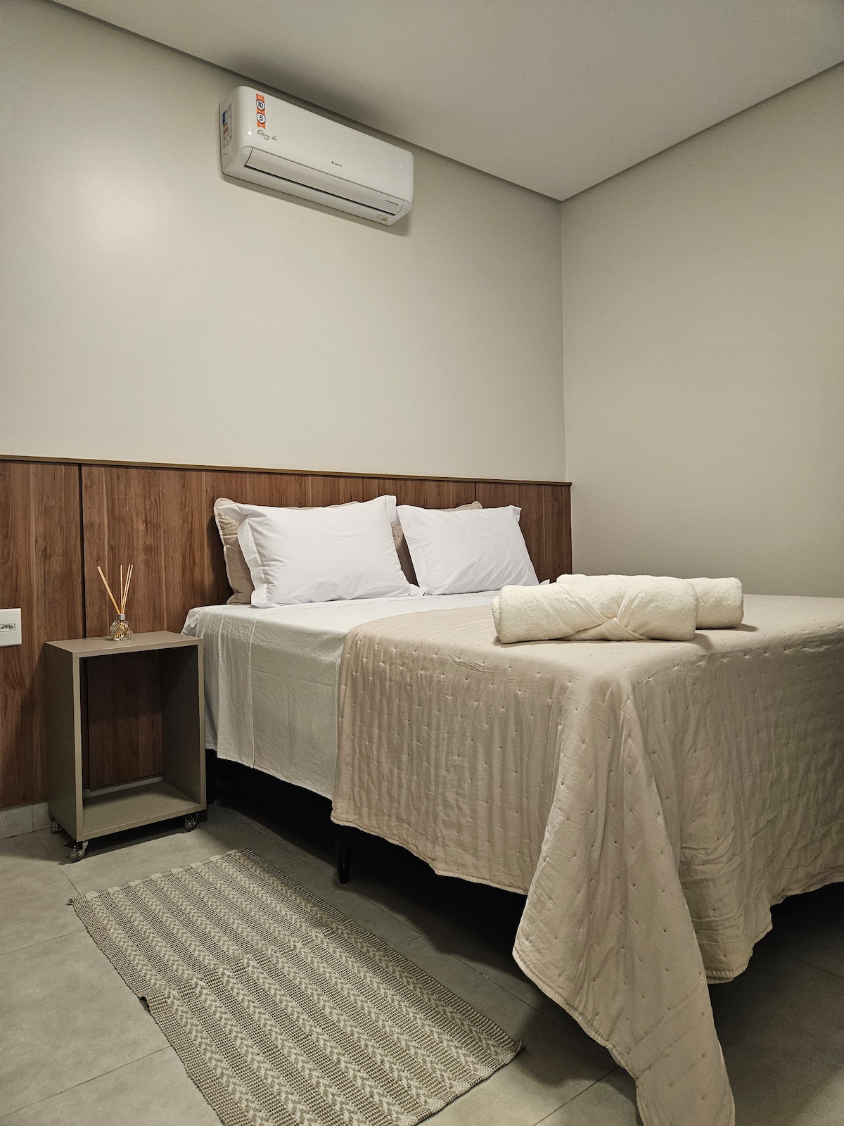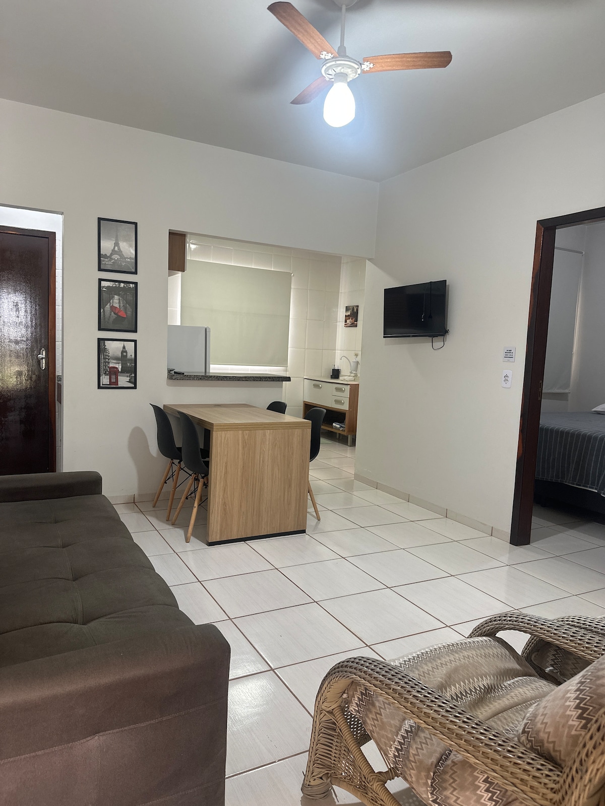 O espaço conta com 1 quarto, 1 banheiro e 3 camas (sendo uma de casal e uma de solteiro), além de ar-condicionado, Wi-Fi rápido, TV e máquina de lavar. A cozinha mobiliada e equipada permite preparar suas próprias refeições com praticidade, e a varanda charmosa é o cantinho ideal para relaxar ao final do dia. Oferecemos estacionamento gratuito e uma localização excelente, próxima a restaurantes, supermercados e salões de beleza. Aqui, cada detalhe foi pensado para proporcionar conforto.