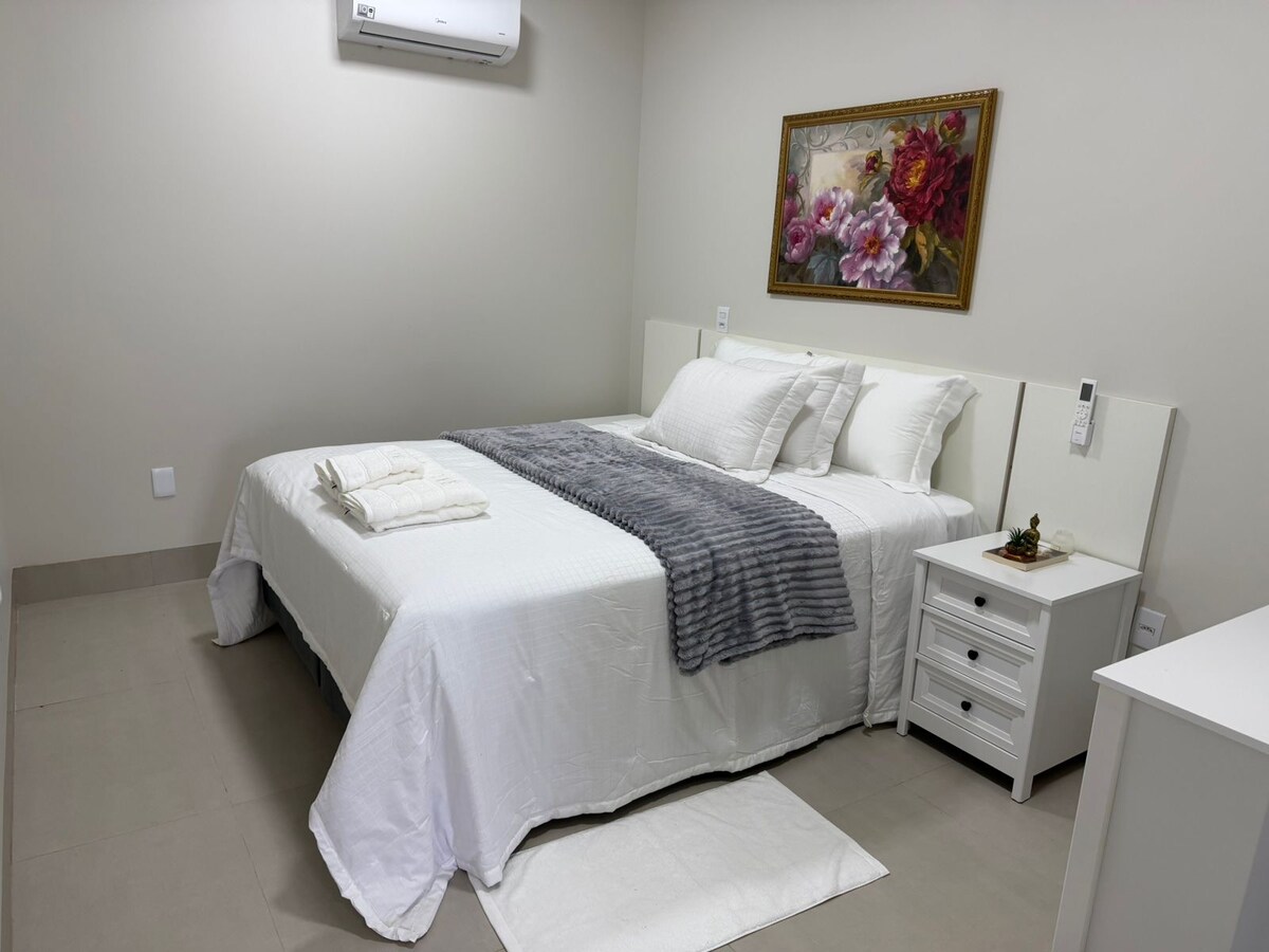 O espaço conta com 1 quarto, 1 banheiro e 3 camas (sendo uma de casal e uma de solteiro), além de ar-condicionado, Wi-Fi rápido, TV e máquina de lavar. A cozinha mobiliada e equipada permite preparar suas próprias refeições com praticidade, e a varanda charmosa é o cantinho ideal para relaxar ao final do dia. Oferecemos estacionamento gratuito e uma localização excelente, próxima a restaurantes, supermercados e salões de beleza. Aqui, cada detalhe foi pensado para proporcionar conforto.