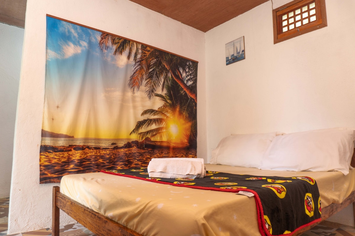 Retreat to our rustic two-story beach house B&B, handcrafted with natural, repurposed materials. Its double-layered roof captures sea breezes, keeping it cool without AC. Unwind on the expansive balcony patio with ocean views, outdoor dining, cozy living area, hammock, and rocking chair. Enjoy hot showers, pristine toilets, and a private, tucked-away vibe, perfect for big groups, families, and friends. Pure, natural coastal charm awaits!