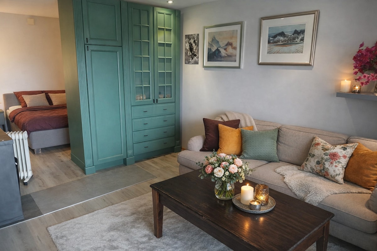 Tyvenhyttene er et signaturprosjekt fra oss og er en spesialdesignet hytte med unikt interiør. Vi har tatt med oss følelsen av å bo på et boutique hotell til den flotte naturen i Mjøsli. Hytta har privat terasse, 1 bad og 1 soverom + sovesofa i stue med tilsammen 4 sengeplasser. Delen med sovesofa dele med glassvegg som er flyttbar og lammeller for som gjør soveplassen privat. - Jacuzzi - WiFi - Elbillading tilgjengelig på fellesparkering - Privat