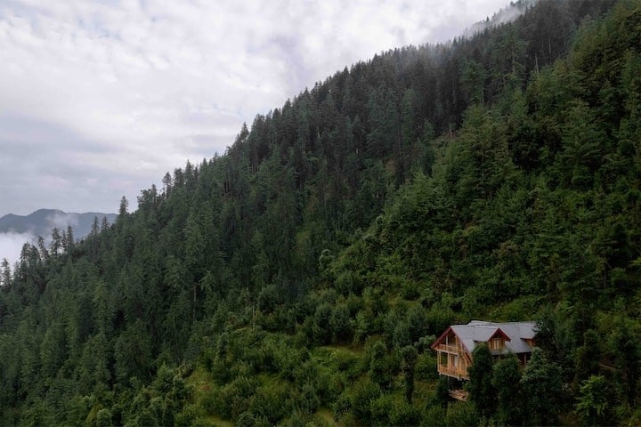 Nestled on a hill in the forests of Lushal, Jibhi, Peak and Pine is a beautiful treehouse combining rustic comfort with natural beauty. This pine wood hideaway offers rare uninterrupted views of six Himalayan peaks. A living tree runs through the cozy space, with warm wooden interiors, large windows, and modern amenities. Enjoy homemade Himachali meals by Kushla , while you disconnect from city life among the mountains. Perfect for peaceful getaways with stunning Himalayan views n forest walks.