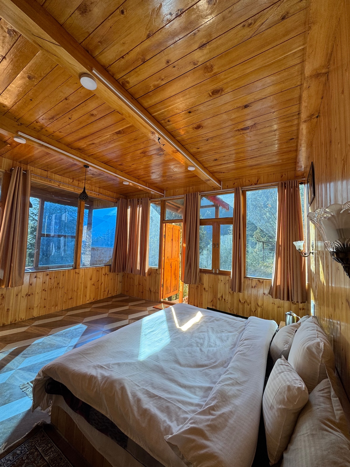 Experience a peaceful and unique wooden duplex in the quite mountains near Kasol. a cozy loft bedroom, warm interiors, a private balcony with mountain views, and a relaxing bathtub. Ideal for couples and friends seeking calm, comfort, and an aesthetic boutique stay surrounded by the nature. there are total 4 units in the property, this duplex is separate and private unit. IN YOUR RESERVATION BREAKFAST IS INCLUDED