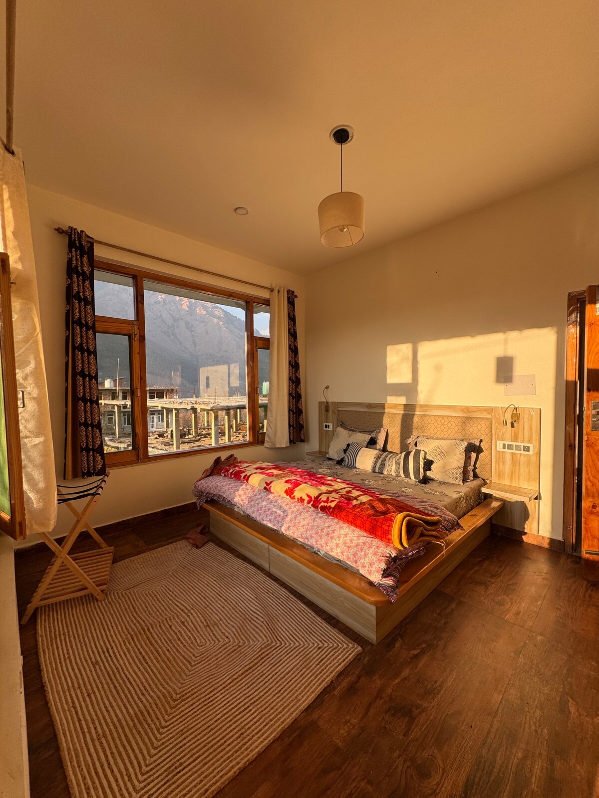For those tired of following usual tourist trails & seeking out unique n less crowded destinations, Get yourself off the grid & indulge yourself in unforgetting experience @ our luxury 2-bedroom aptmnt that has got stunning aesthetics, offers unmatchable tranquility & opportunity to fully immerse oneself in the present moment. Situated at a height of 7500 ft, it offers breathtaking valley view with snow-dusted apple orchards, pine / deodar trees, sprawling mountain range & meandering beas river!