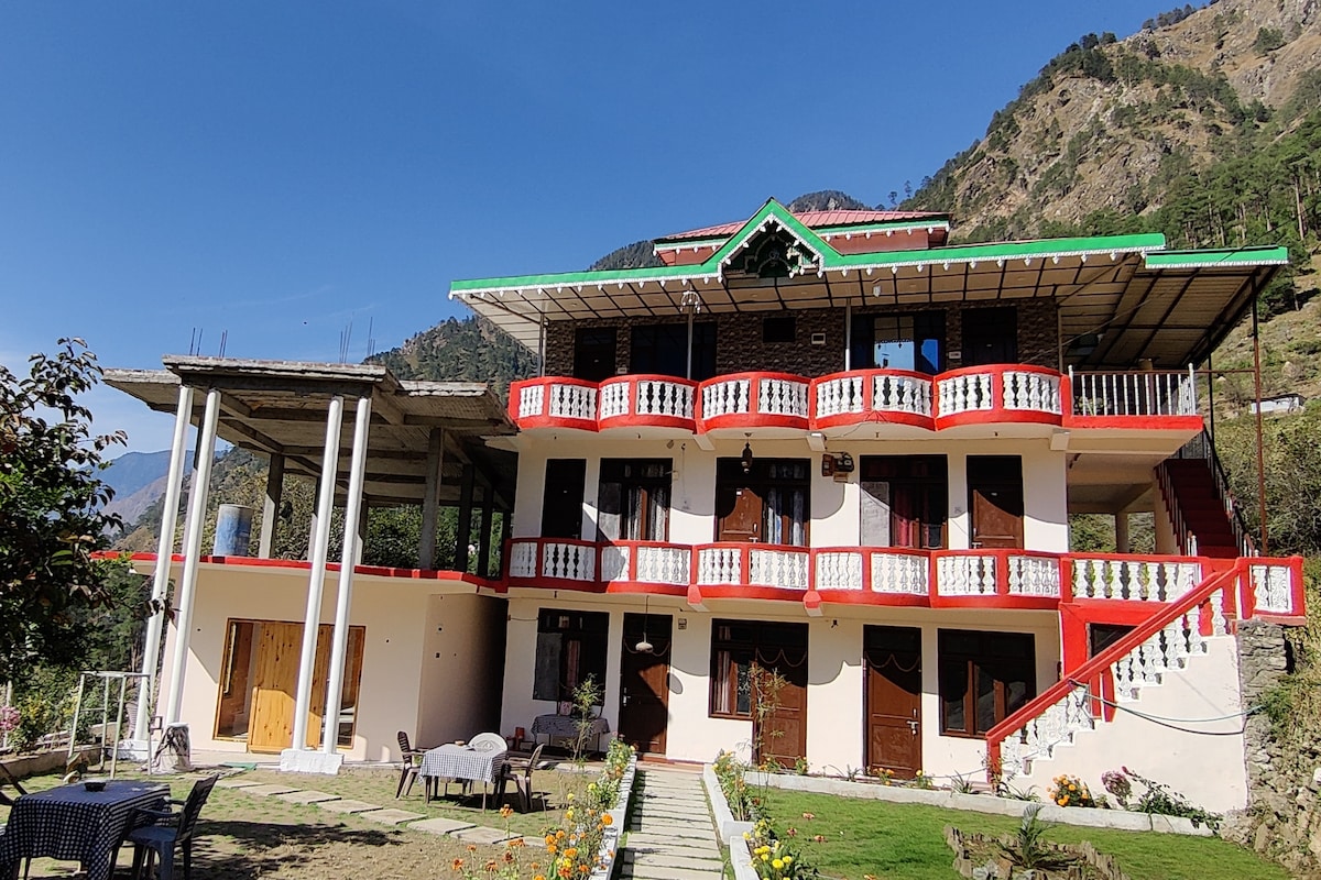 Our Hotel is situated in Tosh a mountain village in the Parvati Valley, surrounded by snow-capped mountains, lush forests, and streams. It's located at an elevation of about 2,400 meters (7,900 ft) on the right bank of the Parvati River. Our hotel offers best hospitality and best vibe and have the best view in the whole village. visit once, you will have lots of fun.