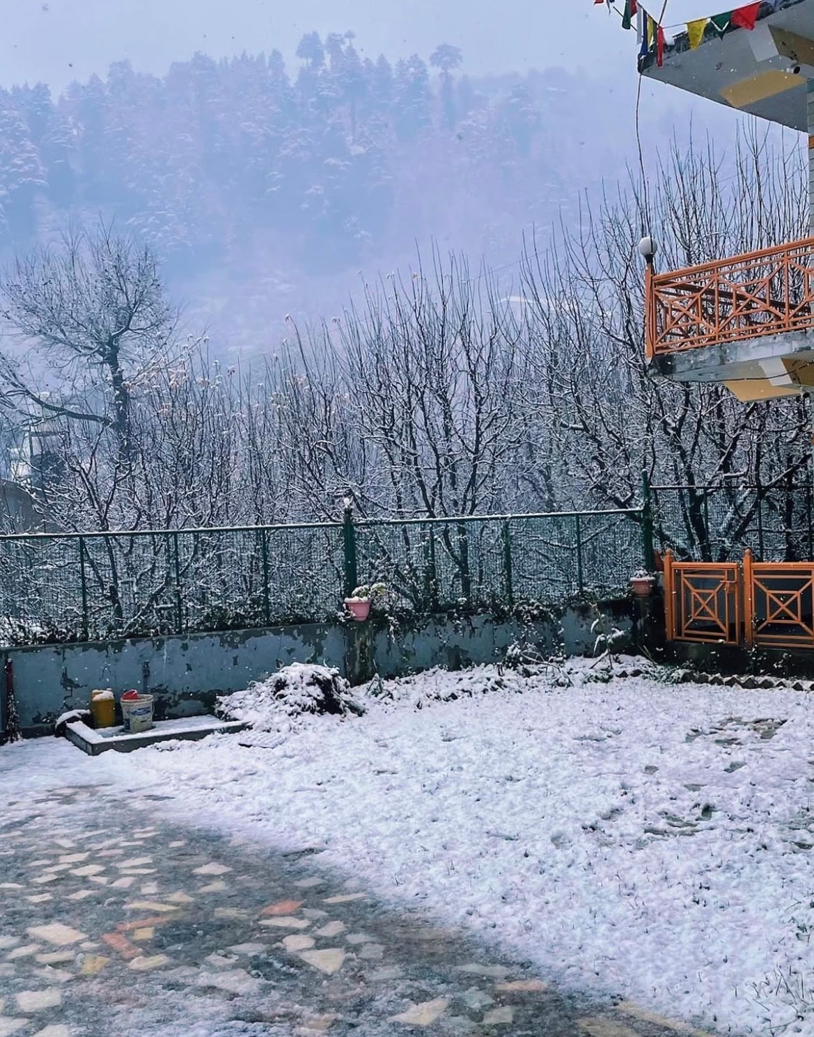 2 private bedroom attached 2 bathroom each room has balcony and common terrace seating mesmerizing view of manali valley right from from your bed A terrace seating there where you can relax in sun in morning and can enjoy party under the stars in evening on top of the property