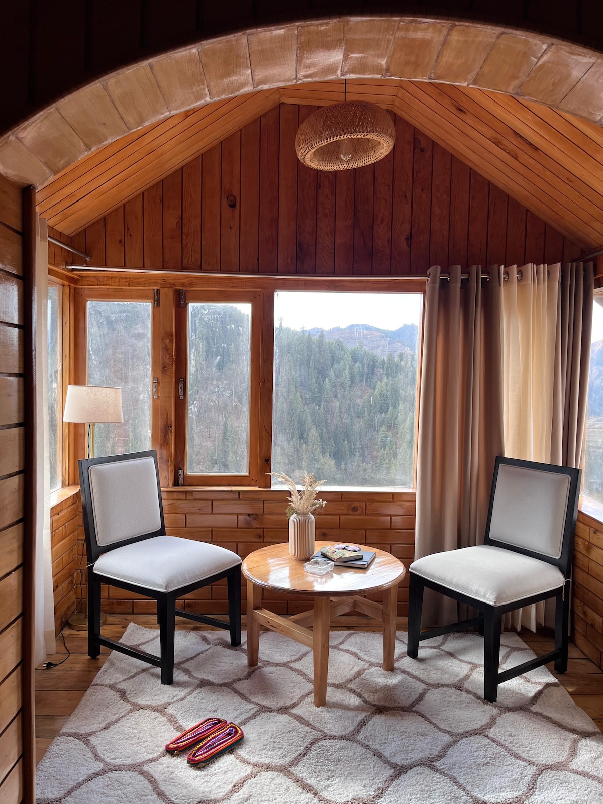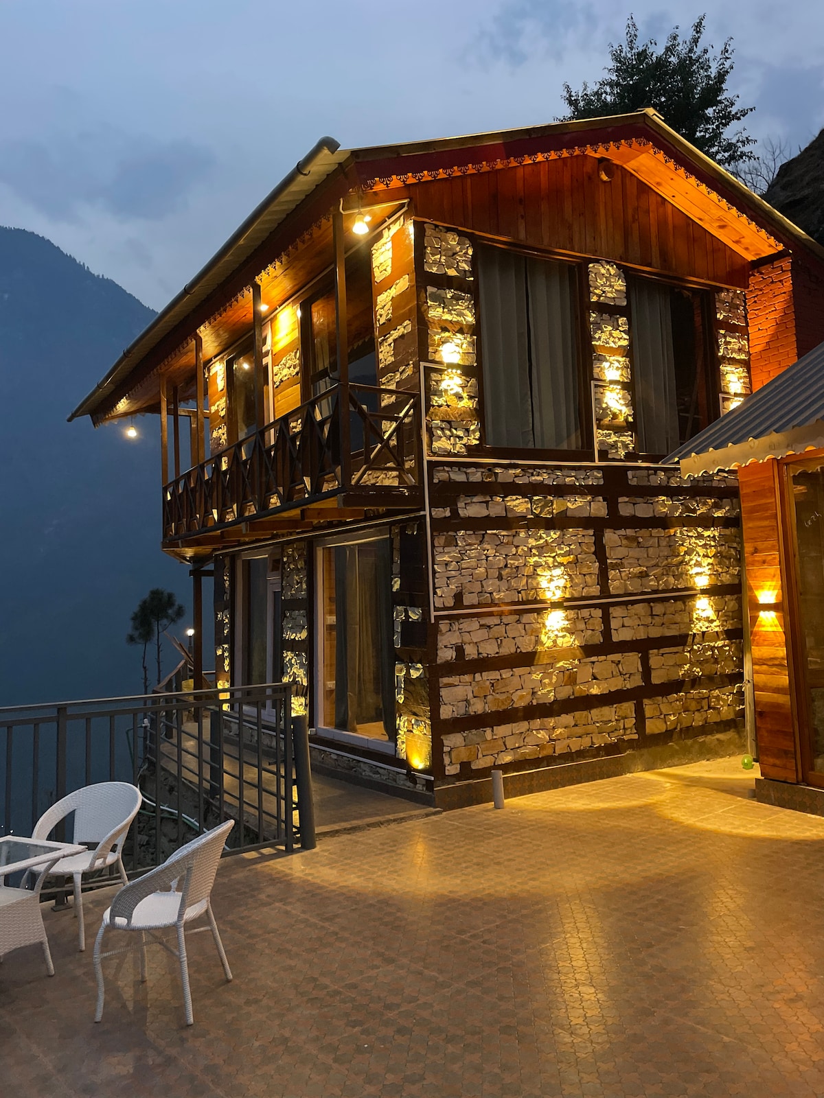 Kick back and relax in this calm, stylish space. * Wifi * Power Backup * Food service & caretaker * Private garden * Pinewood architecture * Safe Parking * Local tips * Bonfire Please note - There is 500 mtrs trek from parking spot to the property, We will pick your luggage. - Price includes stay only. Breakfast, Meals, Room heaters, Bonfire & All other services are excluded.